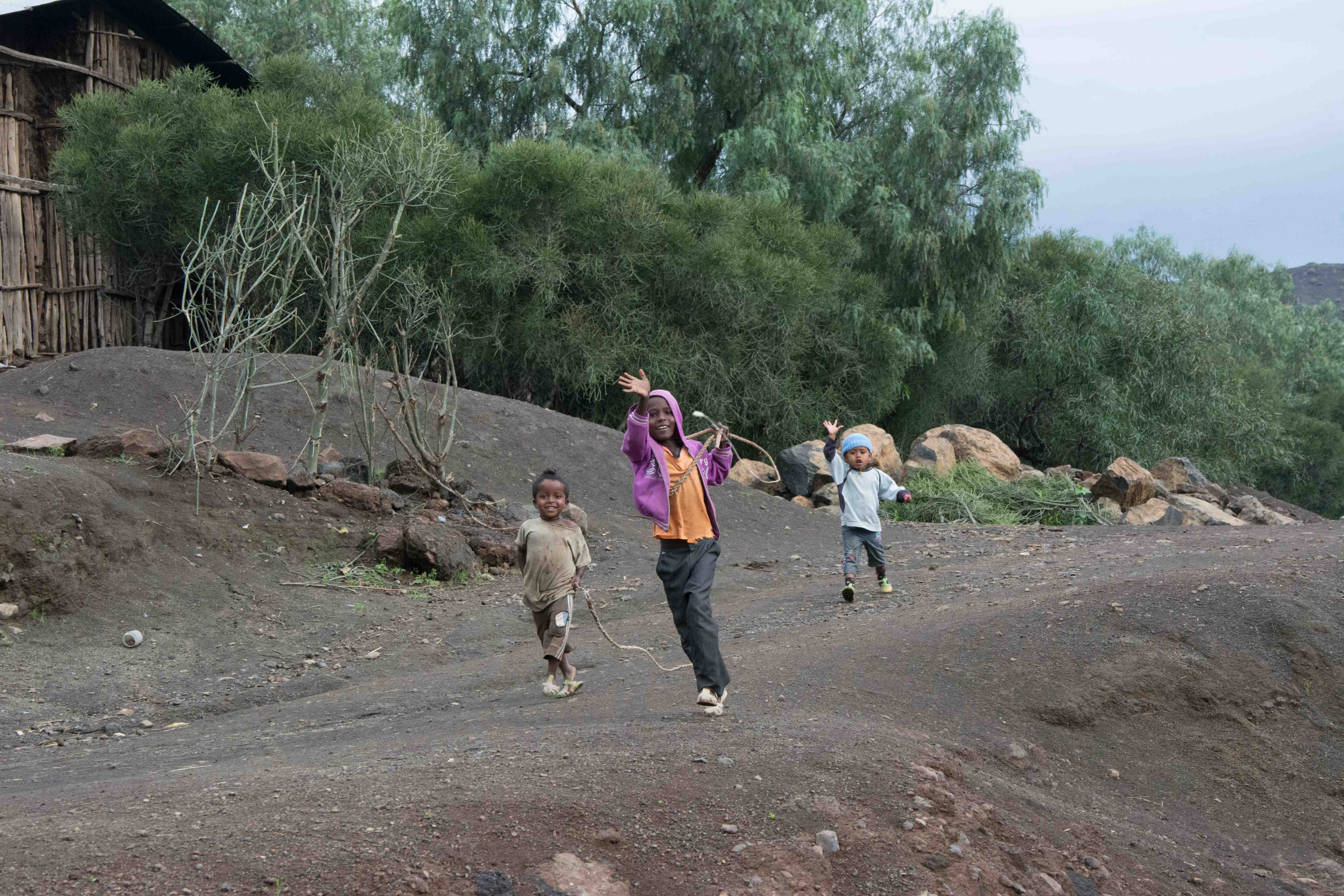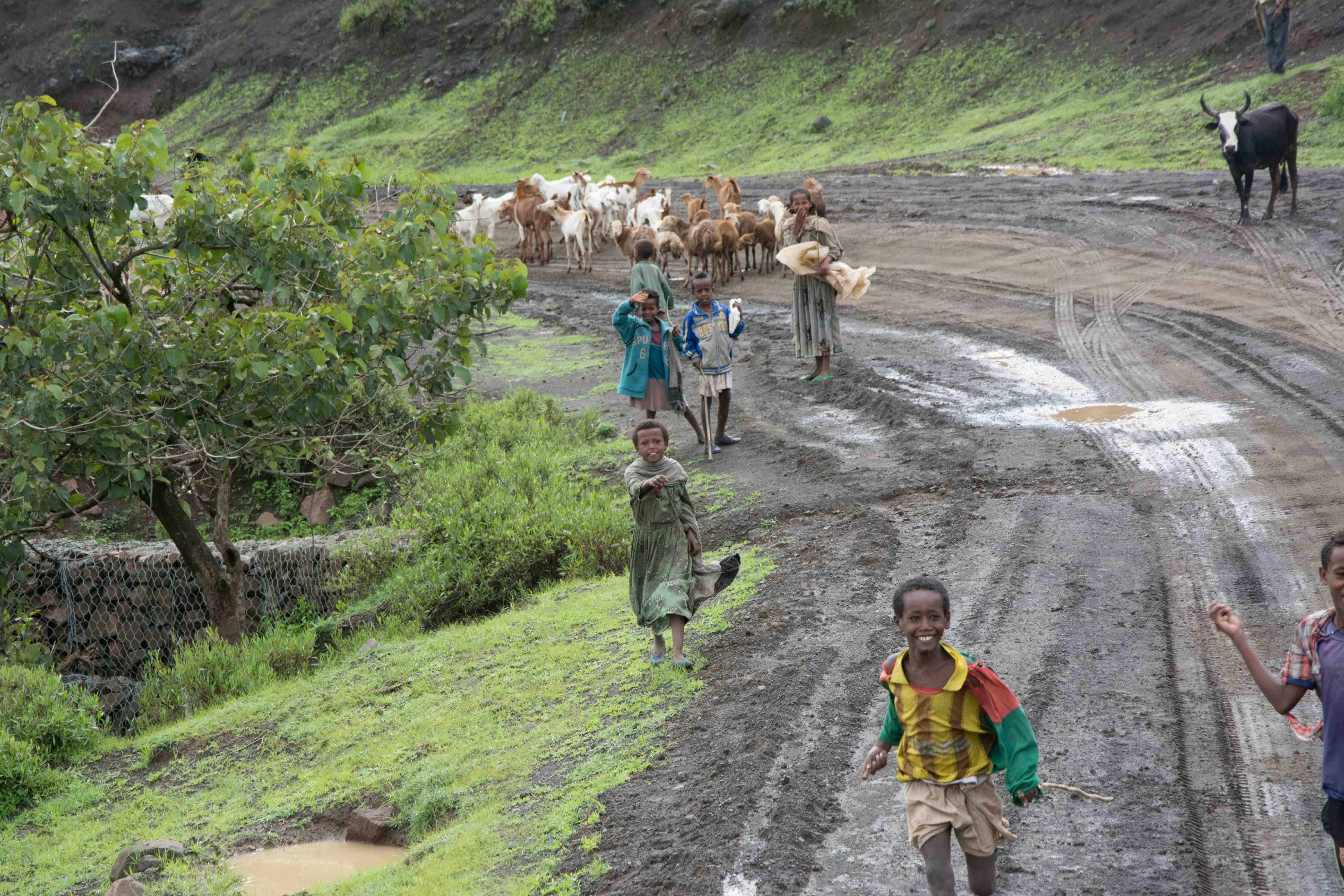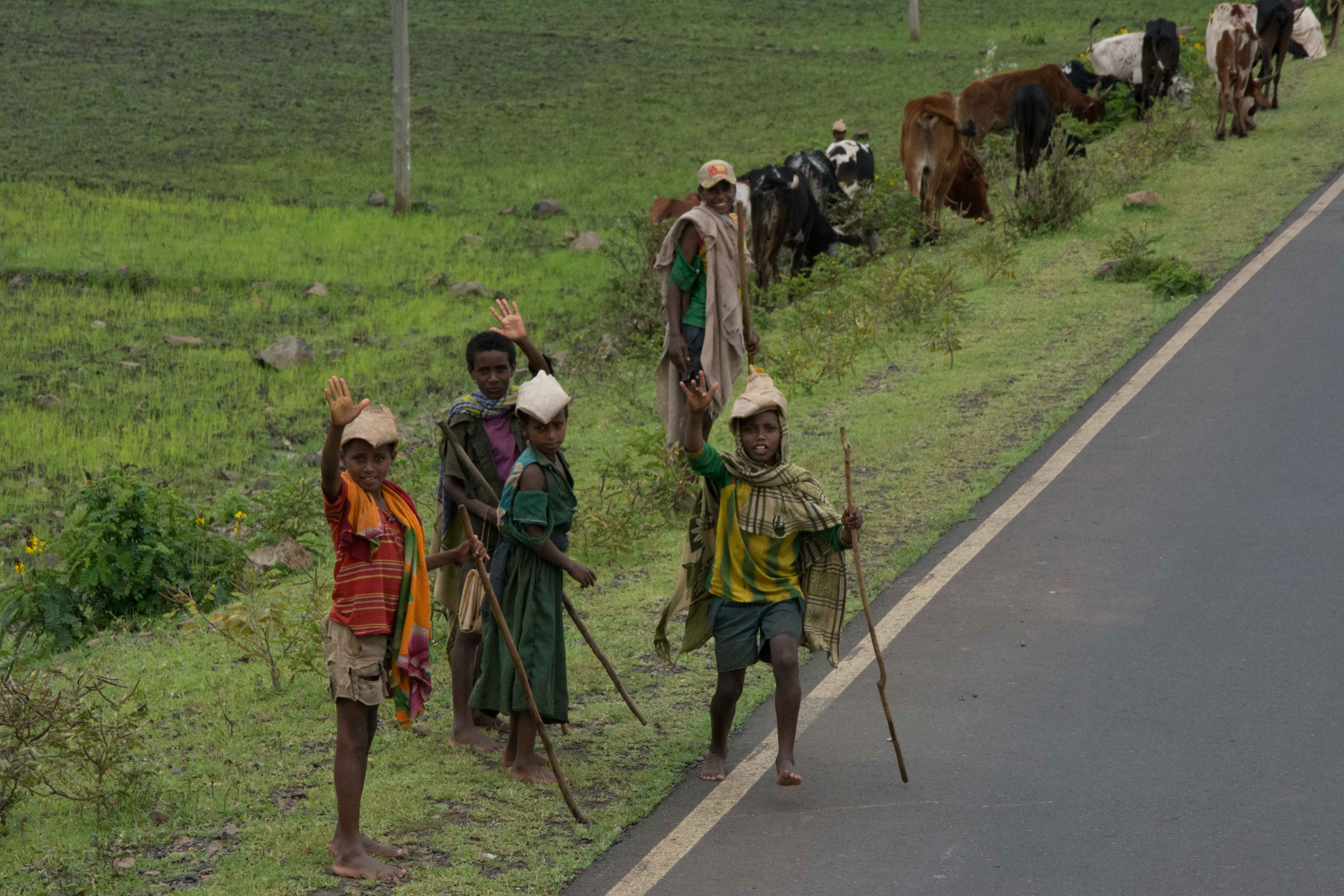Driving north into the Ethiopian Highlands, with dark skies off in the distance and the rain a sure thing, we ran into some of the most beautiful landscapes that rival the majestic British Isles.  The scenery was nothing short of amazing and the children and people always ready to give a friendly wave or a gesture.