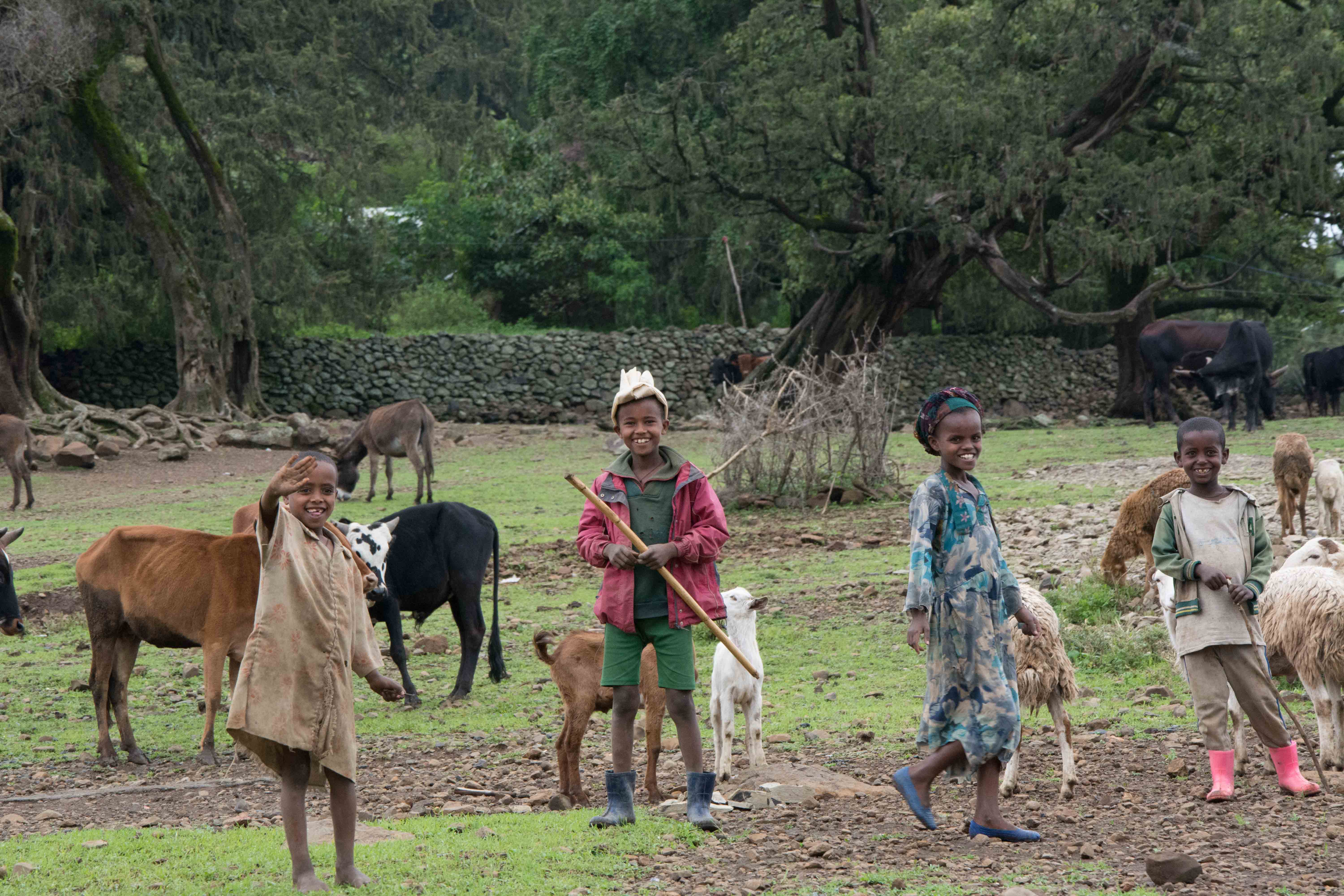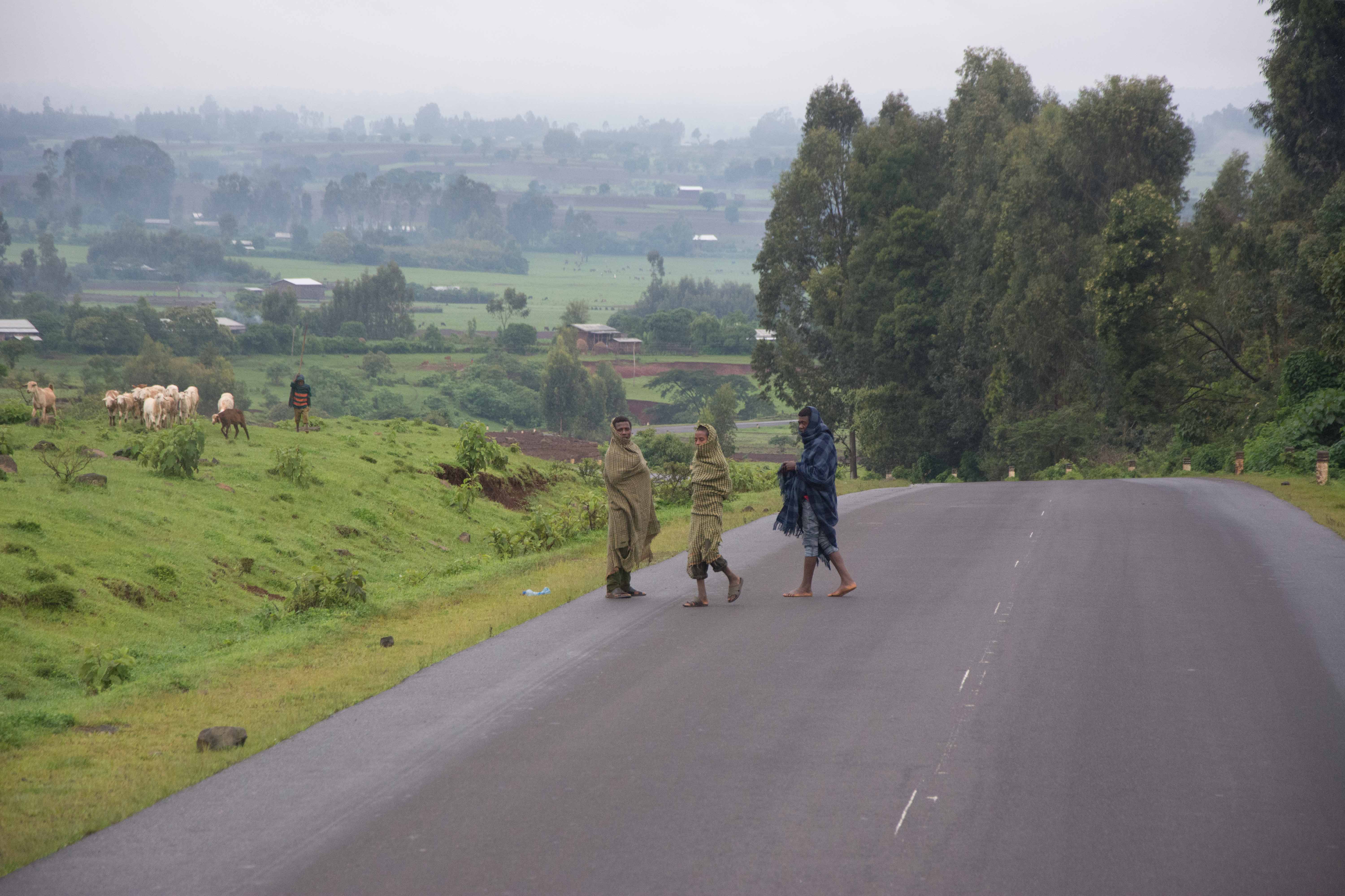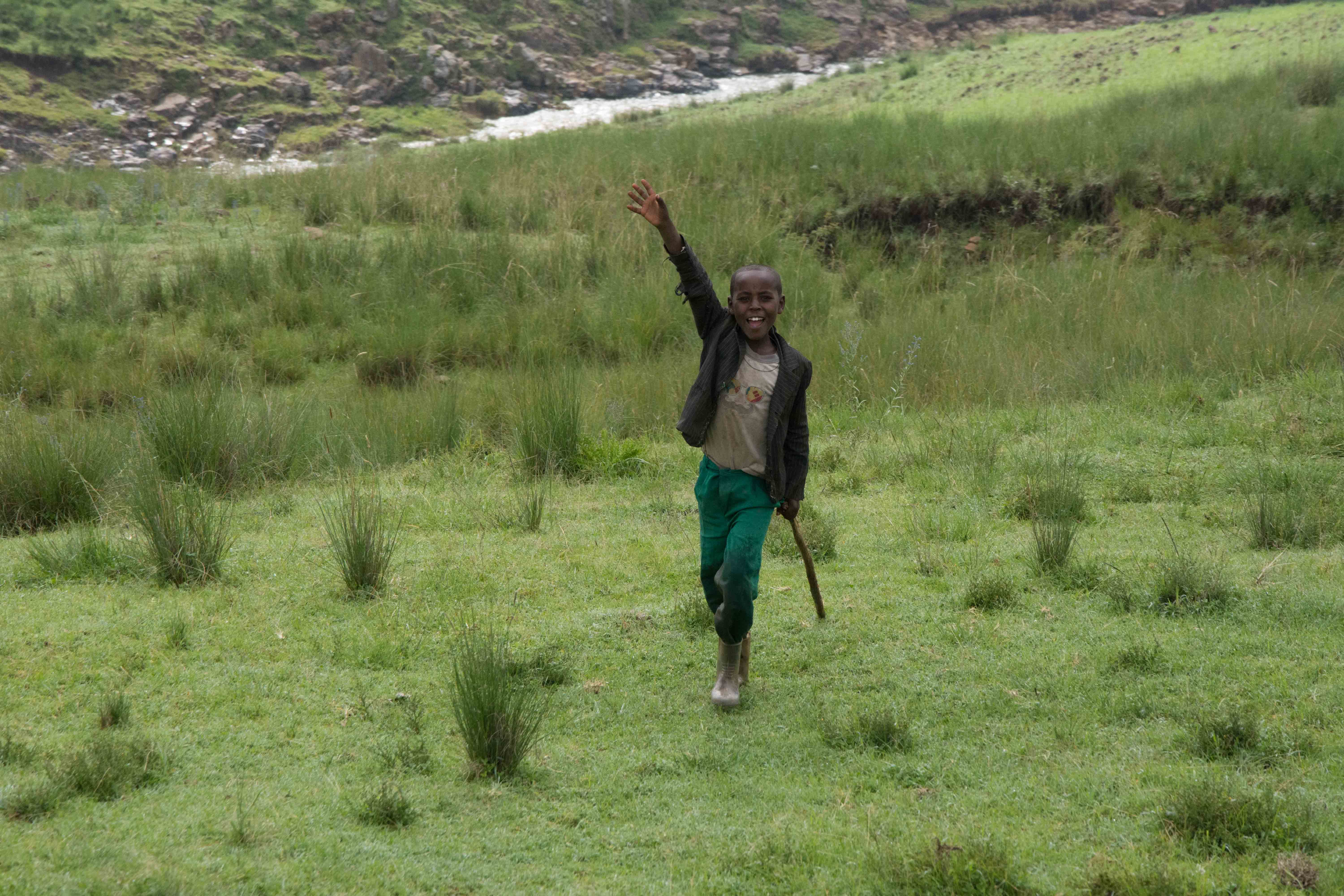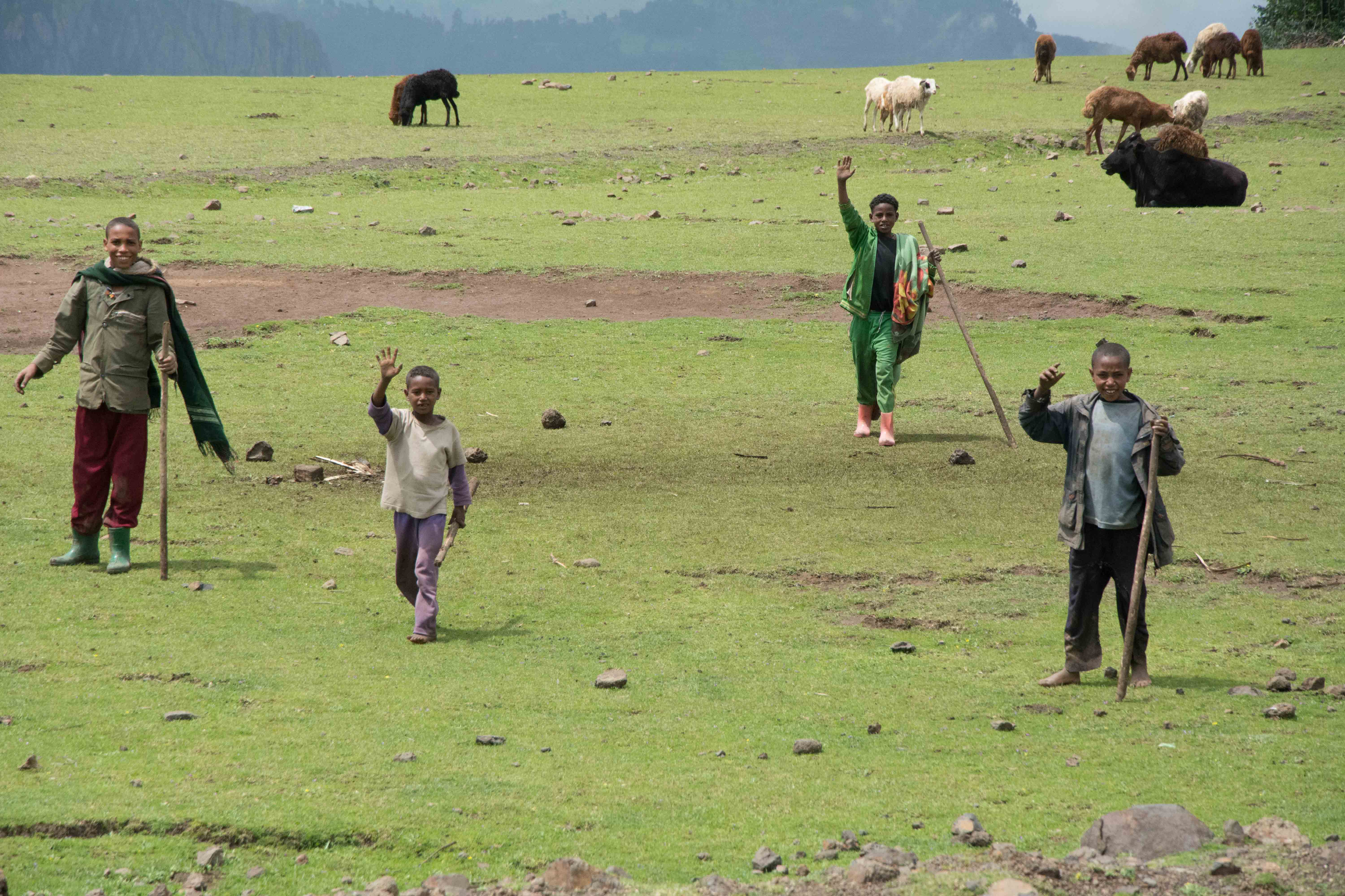Driving north into the Ethiopian Highlands, with dark skies off in the distance and the rain a sure thing, we ran into some of the most beautiful landscapes that rival the majestic British Isles.  The scenery was nothing short of amazing and the children and people always ready to give a friendly wave or a gesture.