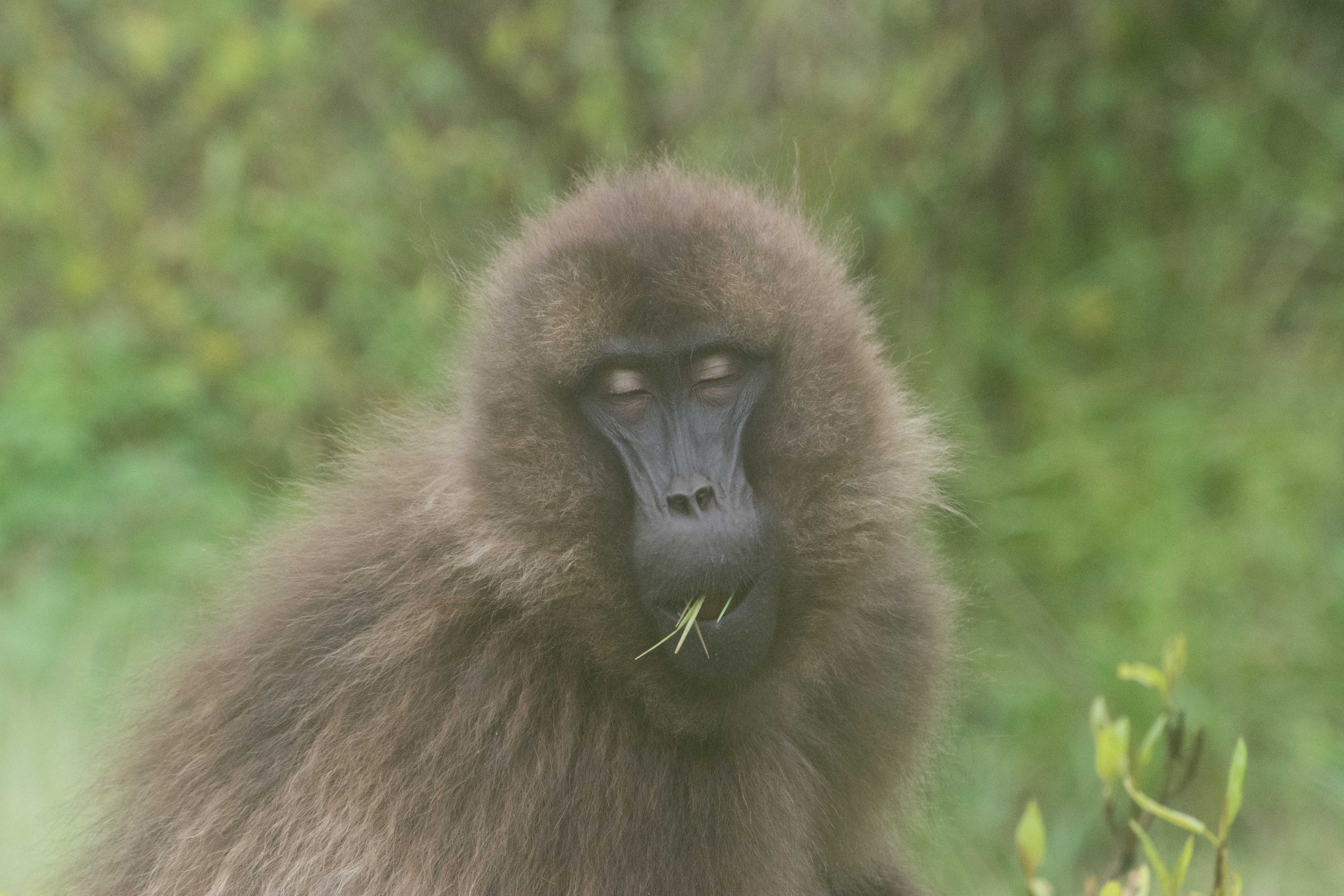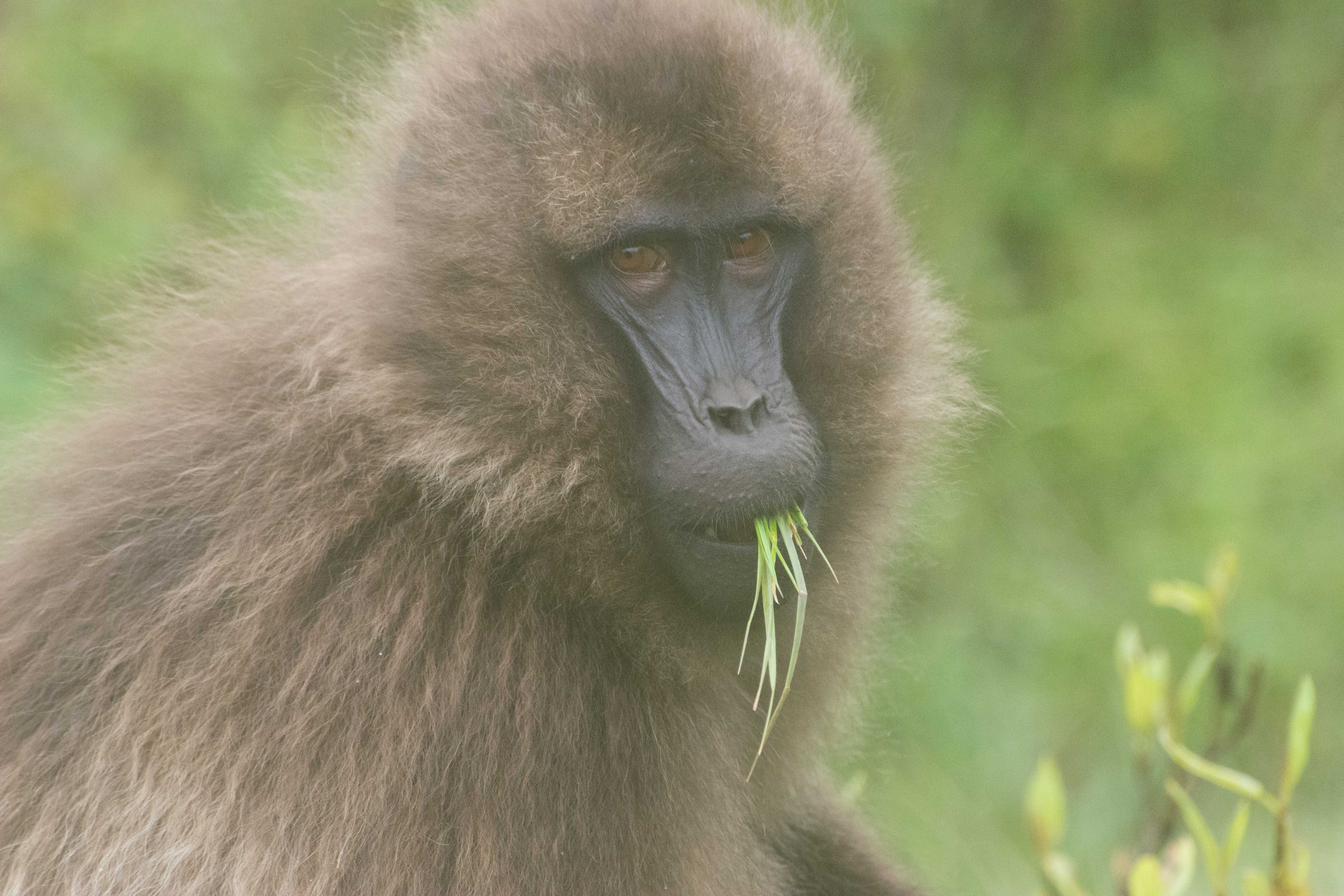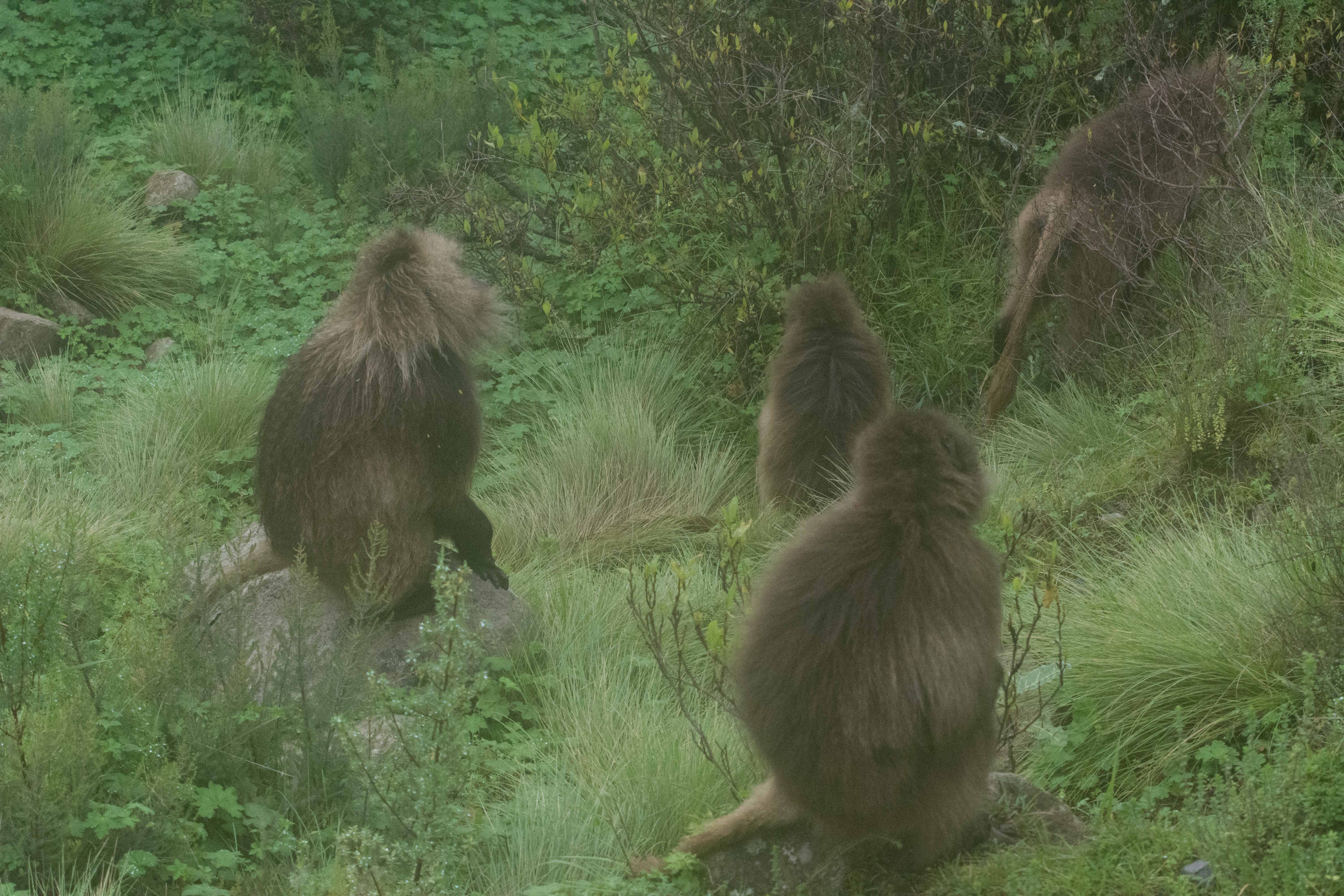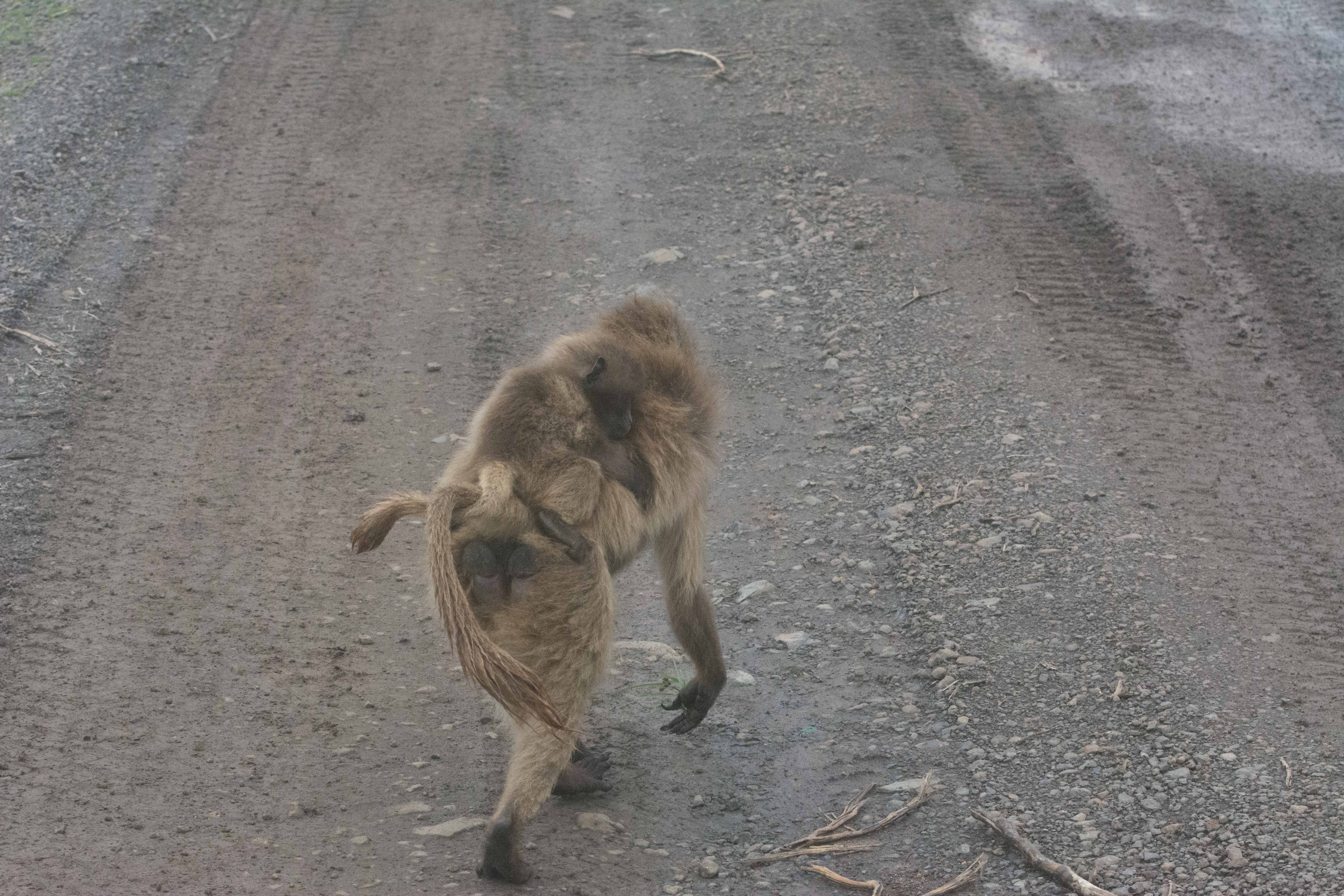 Way up in the Ethiopian Highlands past the famous city of Gondor lies mountains like no other.  The Simien Mountains with its misty fog and rain are some of the biggest mountain ranges on the African Continent.  While I wish the weather was a lot better here, you can never deal with Mother Nature.  While many people come here for the hikes and the beautiful water fall views, I came here to see the famous Gelada Baboons.  These Baboons are found only in a certain part of these mountains and are the last of the grazing baboons left in the world today.  Commonly called the Bleeding Heart Baboons because of the heart on their chest, they have a wide range of facial expressions and vocalizations which are second only to humans.  By day the graze upon the grass of the high mountain plains in troops and by night to stay away from predators they sleep on the rocky cliffs below.  While it rained and was foggy most of the time up here, I did get close enough to see how they function as a troop.  Most of the trekking was done in rain and fog and wind, but when the rain cleared we also got a beautiful look at the stunning scenery of the waterfalls and landscape.  You can see below what I mean….