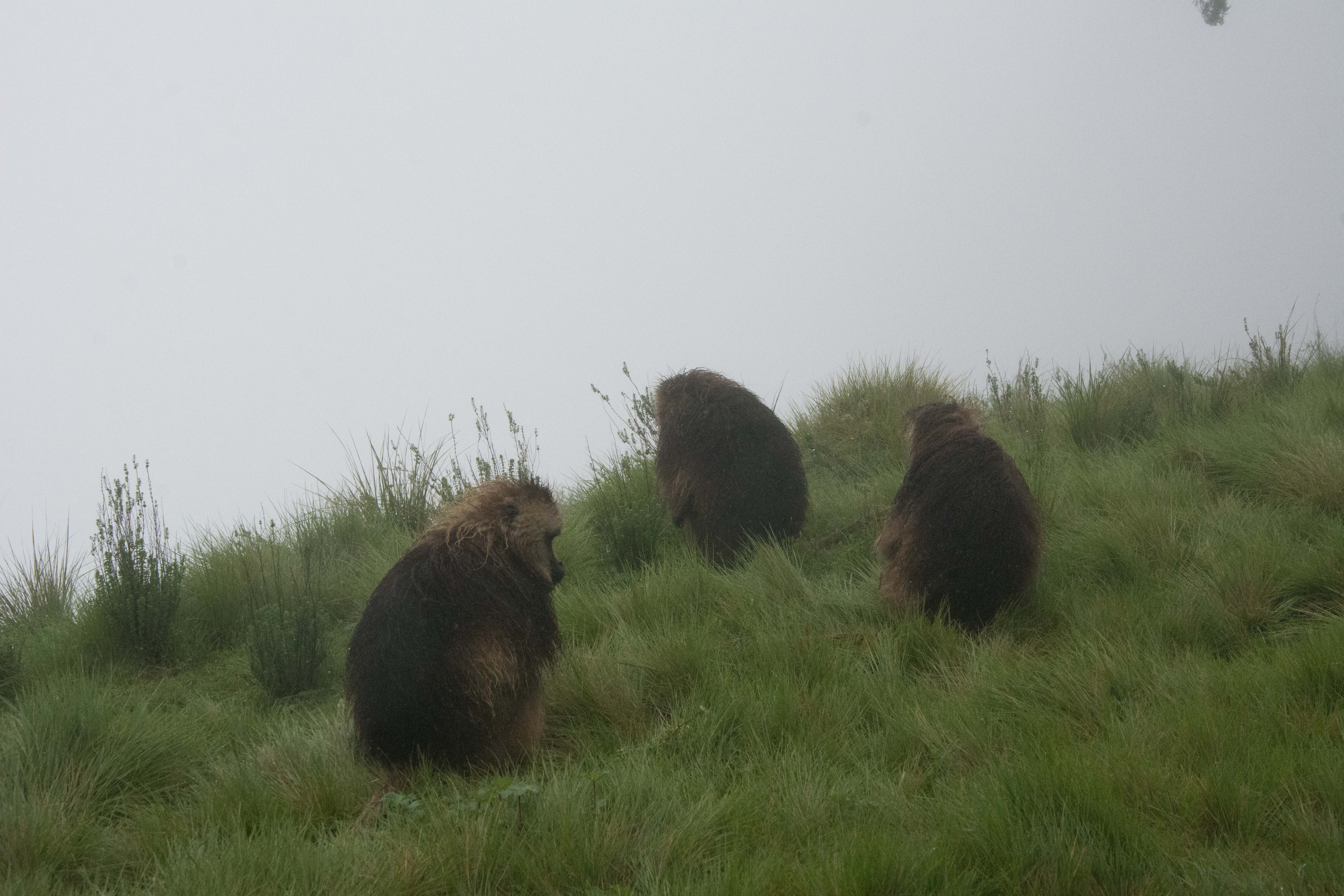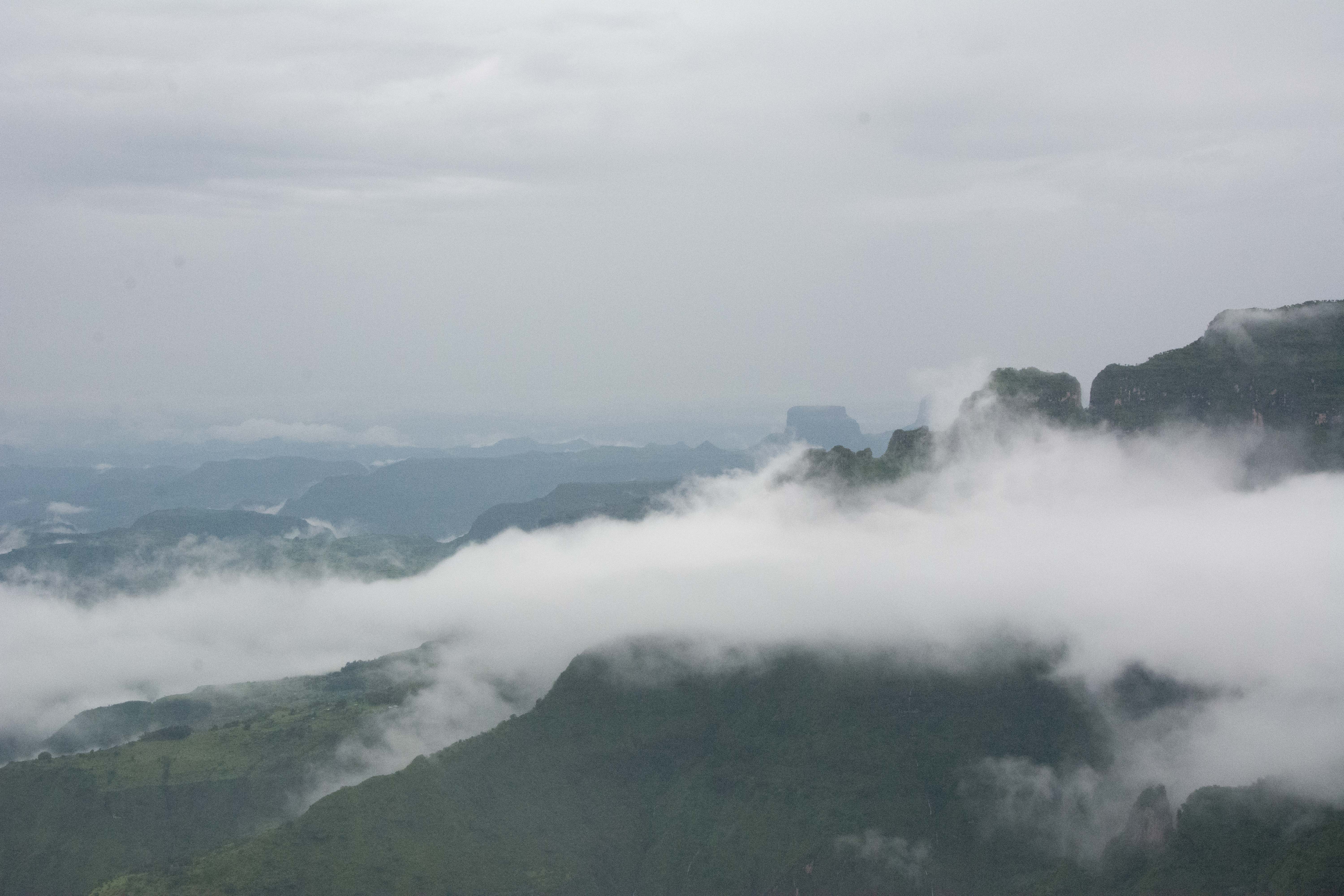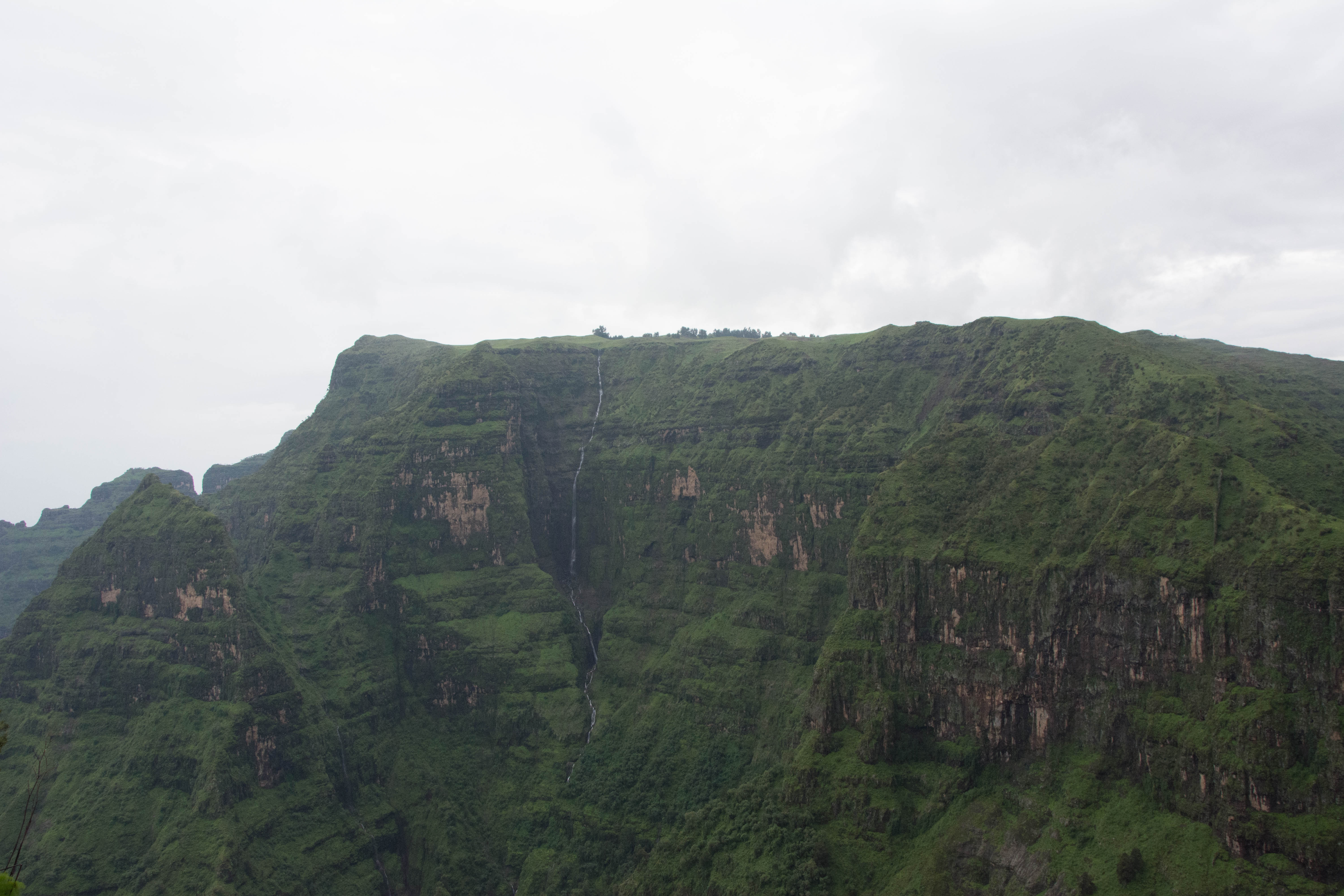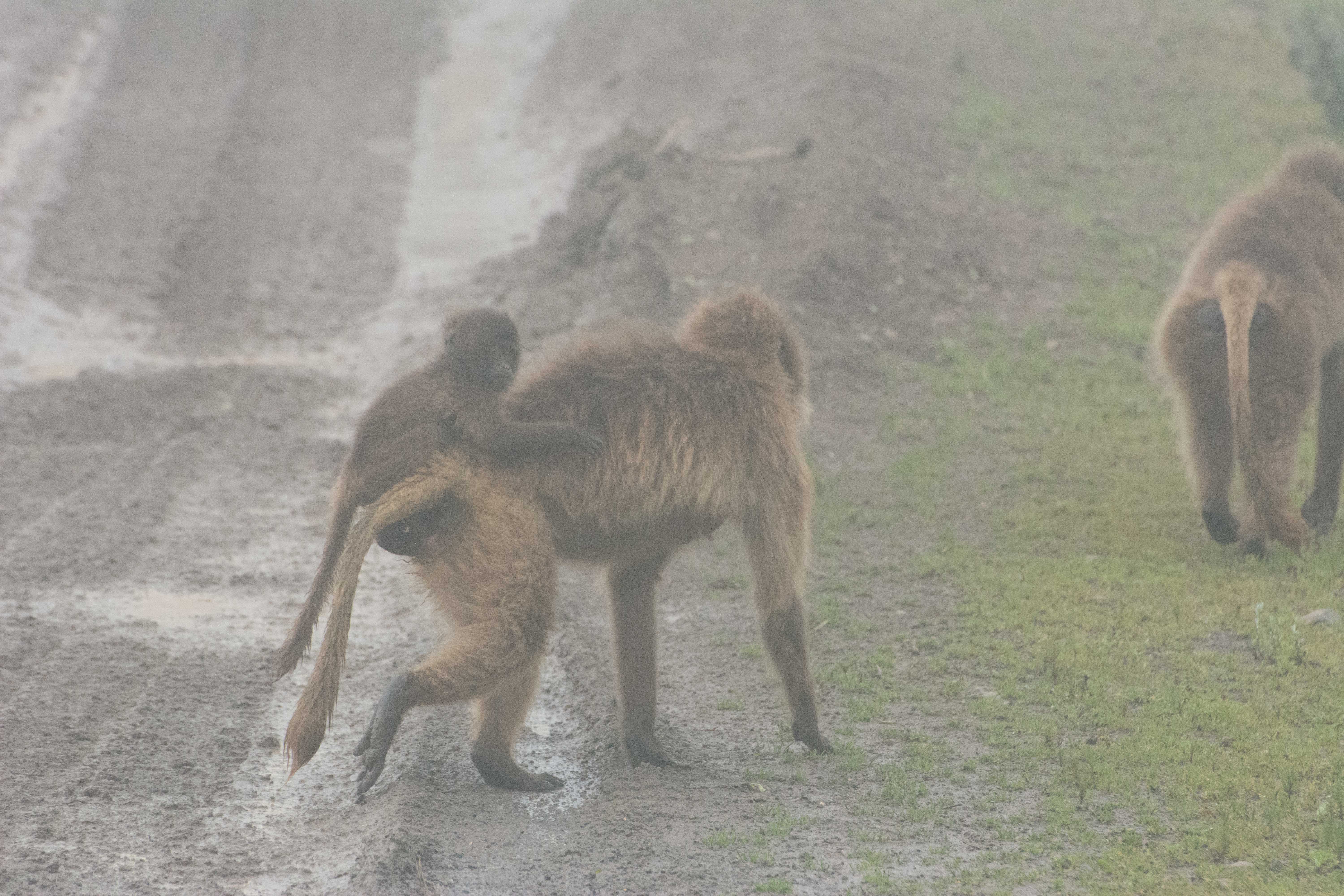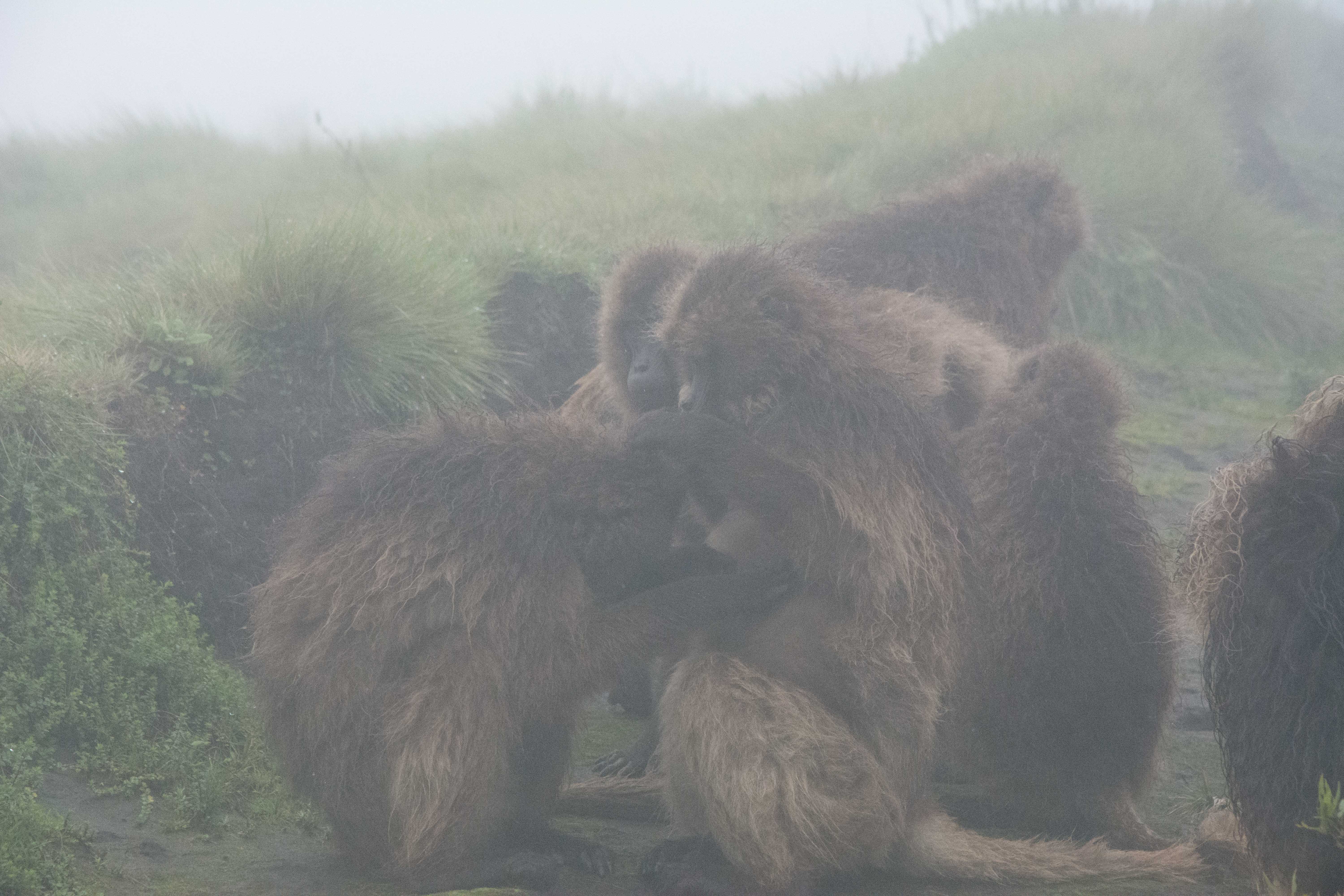 Way up in the Ethiopian Highlands past the famous city of Gondor lies mountains like no other.  The Simien Mountains with its misty fog and rain are some of the biggest mountain ranges on the African Continent.  While I wish the weather was a lot better here, you can never deal with Mother Nature.  While many people come here for the hikes and the beautiful water fall views, I came here to see the famous Gelada Baboons.  These Baboons are found only in a certain part of these mountains and are the last of the grazing baboons left in the world today.  Commonly called the Bleeding Heart Baboons because of the heart on their chest, they have a wide range of facial expressions and vocalizations which are second only to humans.  By day the graze upon the grass of the high mountain plains in troops and by night to stay away from predators they sleep on the rocky cliffs below.  While it rained and was foggy most of the time up here, I did get close enough to see how they function as a troop.  Most of the trekking was done in rain and fog and wind, but when the rain cleared we also got a beautiful look at the stunning scenery of the waterfalls and landscape.  You can see below what I mean….