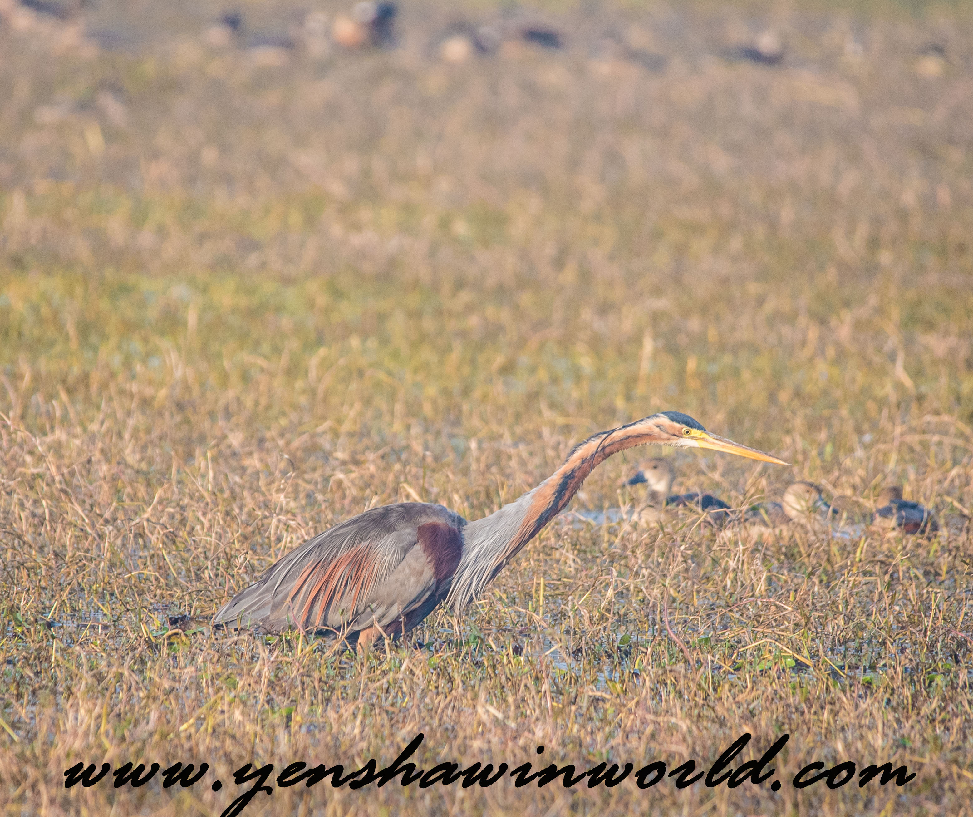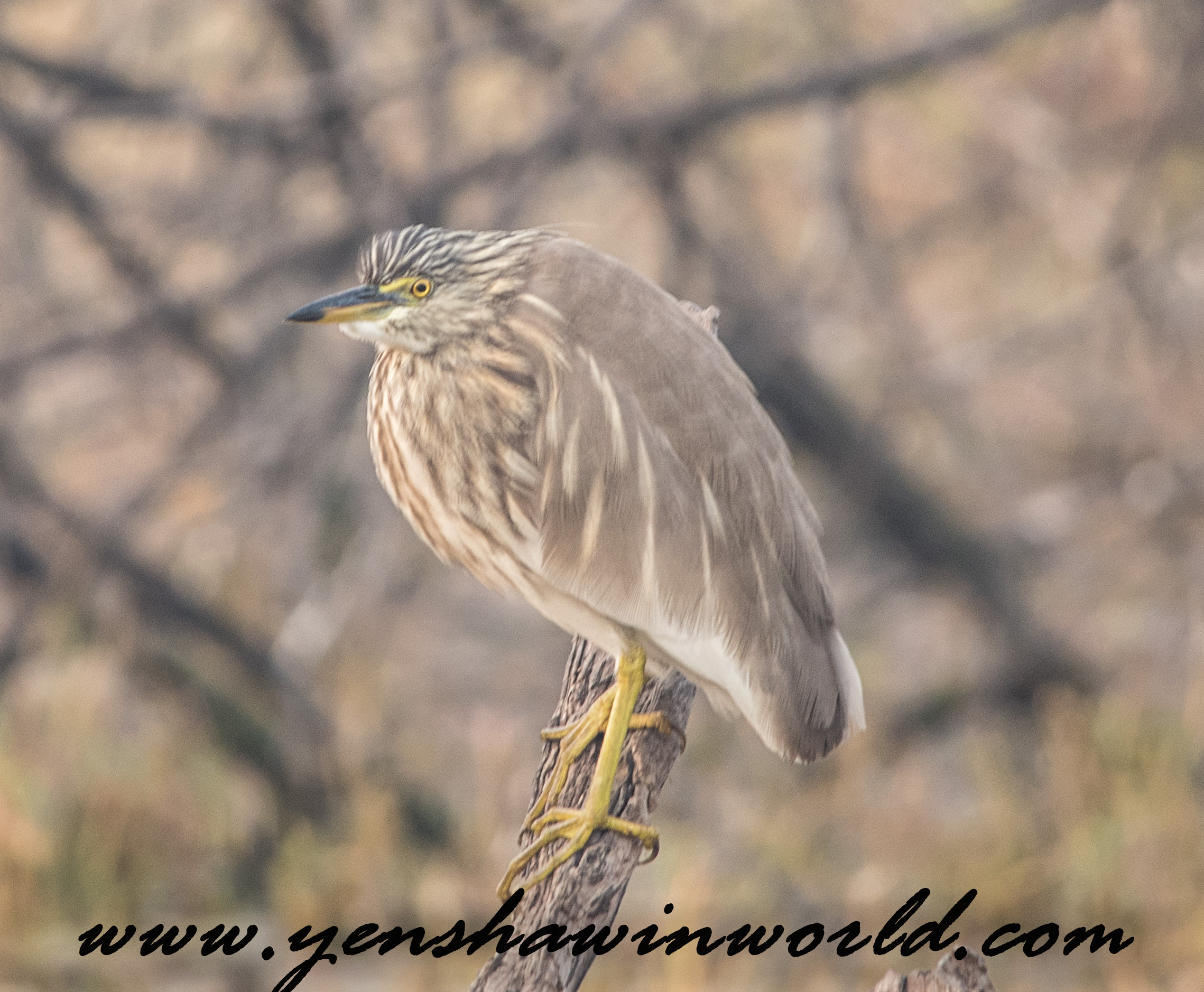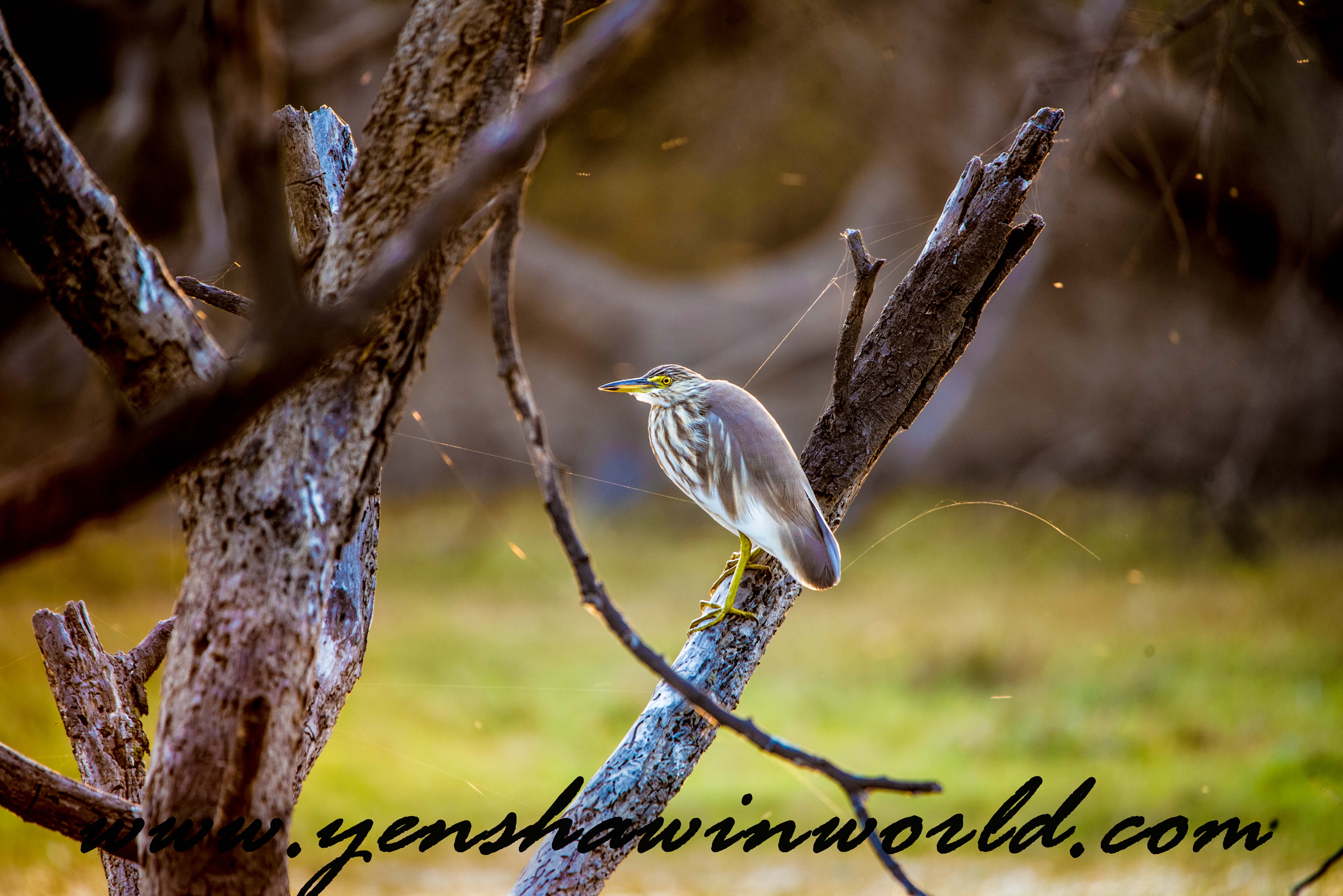 Some of the species I saw and photographed were the following: Spotted Owlet, Purple Sun Bird, Rose ring Parakeet, Laughing Dove, White Eared Bulbul, Oriental Magpie, King Fisher, Spot Billed Duck, Grey Horn bill, Black Headed Ibis, Purple Headed Heron, Indian Sarus Crane, Greater Spotted Eagle, and the rare Black Bittern. Of course there were many other species that I saw but these were some of the most interesting and rare ones……